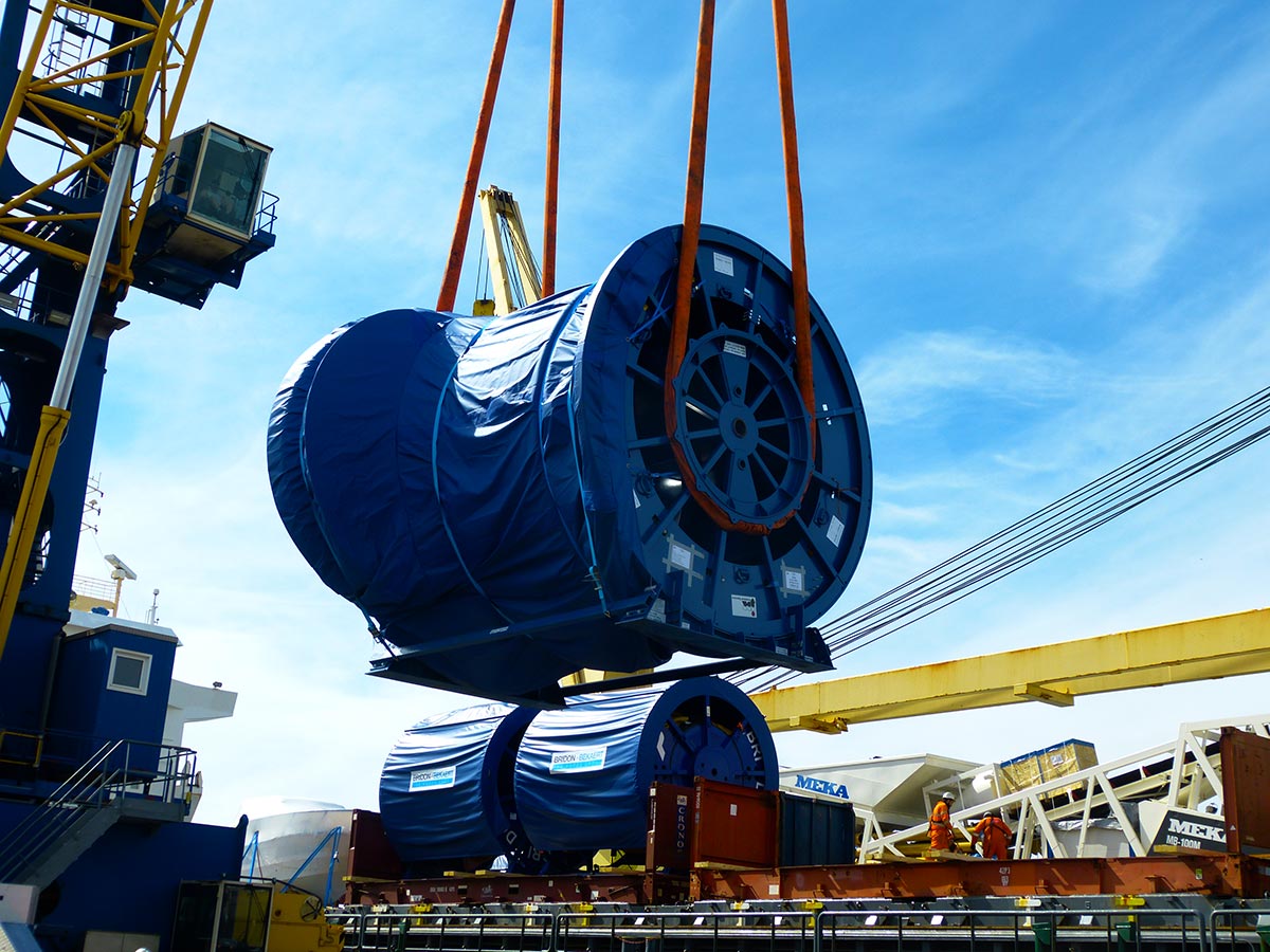 We recently completed a Shipment of 5 reels from the UK to the Caribbean island of St Croix in the US Virgin Islands. The largest of the reels being 5.28M x 4.61M x 4.52M and weighing in at 39,000Kgs.